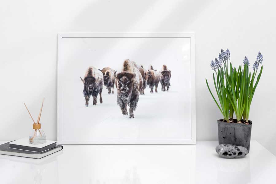Ročno poliran akril fotografiji doda čudovit, globinski učinek, nevidni sistem obešanja pa poskrbi za iluzijo lebdenja. Odtis se ponaša z bogatimi in intenzivnimi barvami, ki kar zažarijo ne glede na kot pod katerim si fotografijo ogledujemo.